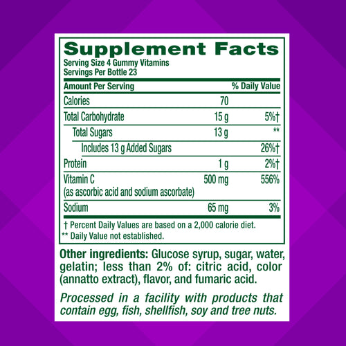 vitafusion™ Power C Extra Strength gummies deliver a higher dose of Vitamin C to help support immune health.* Each serving provides 1000mg of Vitamin C in a delicious gummy format.