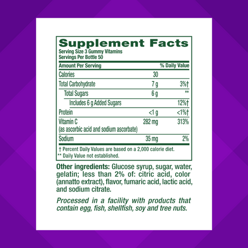vitafusion™ Power C gummies provide vitamin C to help support immune health.* Each serving delivers 500mg of Vitamin C in a tasty gummy format.