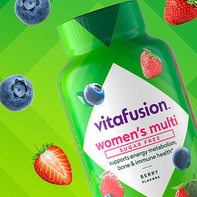 vitafusion™ Women's Sugar-Free Multivitamin gummies provide essential vitamins and minerals for women in a sugar-free gummy format.* Each serving supports energy metabolism, immune health, and overall wellness while avoiding added sugars.
